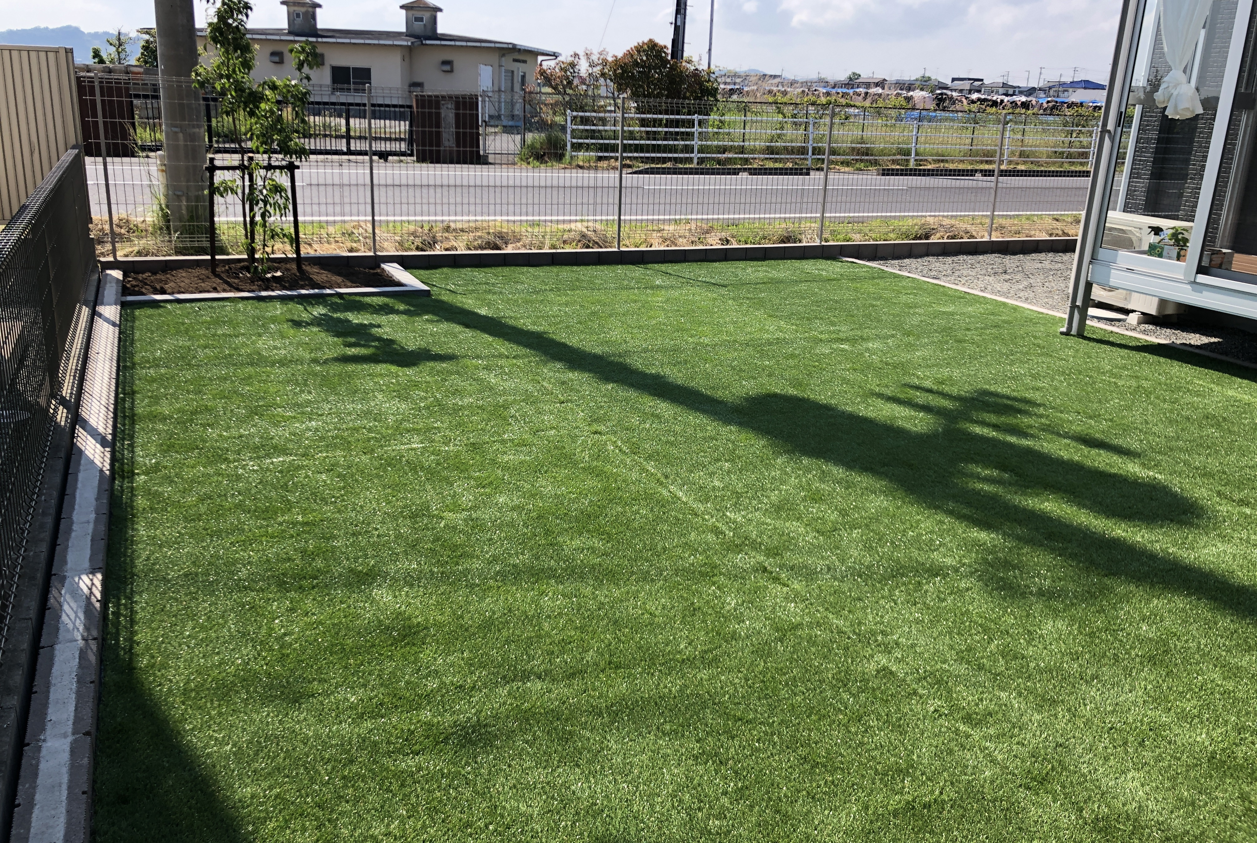 お手入れ不要でお子様が走り回っても安心な人工芝を敷きました 人工芝 クローバーターフ レギュラータイプ使用