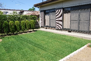 広いお庭の芝生の張替え、また、ペットを飼いはじめるという事で、中庭にはペットと共にくつろげる様なスペースを提案してみました。