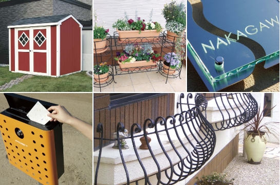 ポスト・表札・木製物置・アイアンフェンス・立水栓・ブロック・レンガ・ガラスブロック etc・・・