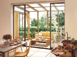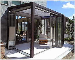 ①折戸パネルが全開閉ができるため温度調節でき、冬は暖かなサンルーム、夏は開放感のあるテラスとして使えます。.