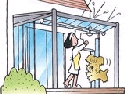 ④屋根材はアクリル樹脂屋根材とポリカーボネート屋根材の2タイプ。ポリカーボネート屋根材は、人体に有害とされる紫外線をカットし、より安全な自然浴生活が楽しめます。また耐衝撃度がガラスの250倍以上と強度にすぐれています。